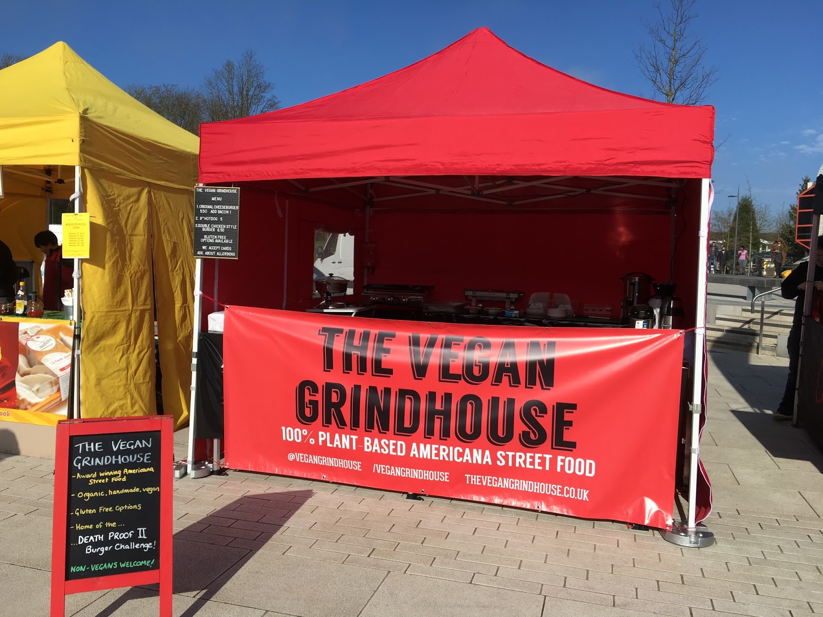 Our faithful catering trailer Artie has been retired and we are currently in our new red pop up stall, we are awaiting a new custom roof and will update pictures when this has arrived. Until then, this is how our new stall looks, come and see us at an event near you soon...See our locations tab for details. As we have a different set up, in order to serve our food to you as quickly and efficiently as possible, we have slimmed down our menu and will bring 3 or 4 options to each event, rotating the options every few events. We have taken off our side dishes and reduced our menu prices for a great value faster service.